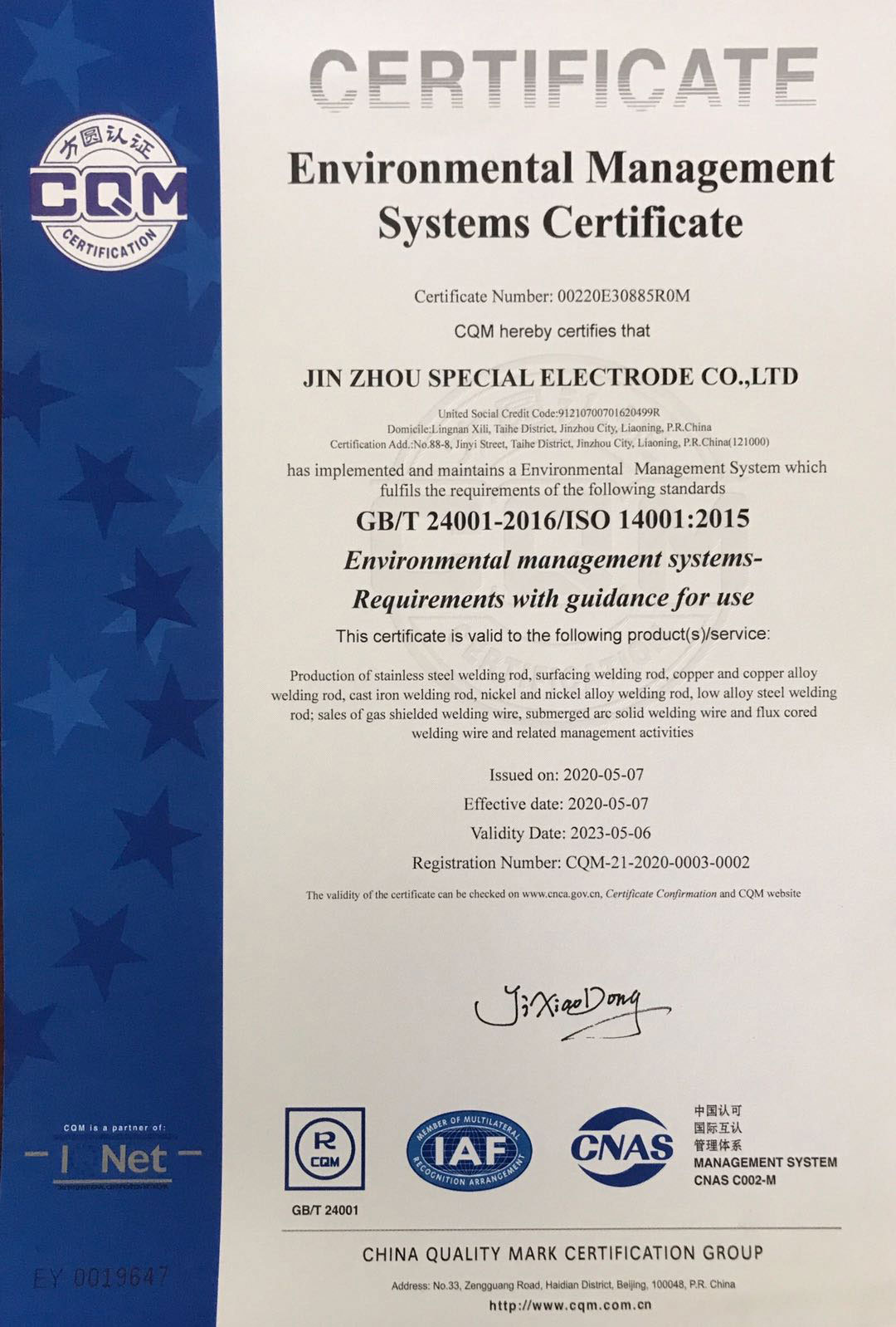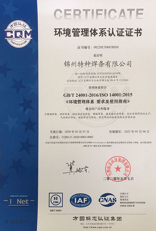 認證類別:GB/T 24001-2016/ISO 14001:2015 《環境管理體系 要求及使用指南》